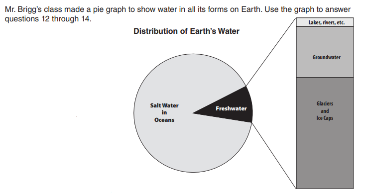 Mr. Brigg challenged his students to name one source of freshwater in the biosphere, the atmosphere, the hydrosphere, and the geosphere. If you were in Mr. Brigg’s class, how would you complete this assignment? Use the chart in problem 12 to help you answer this question. You must identify ALL FOUR spheres.
