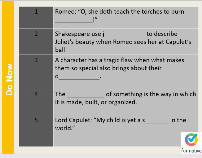 2. Shakespeare use j ____________to describe Juliet’s beauty when Romeo sees her at Capulet’s ball.