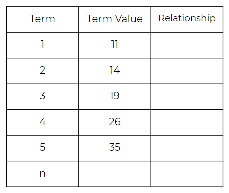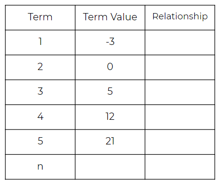 Create your own sequence that represents a quadratic relationship between two quantities and write its explicit function