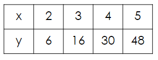 The table below shows a relationship between values of x and y. Write an equation that describes the relationship for the values in the table.