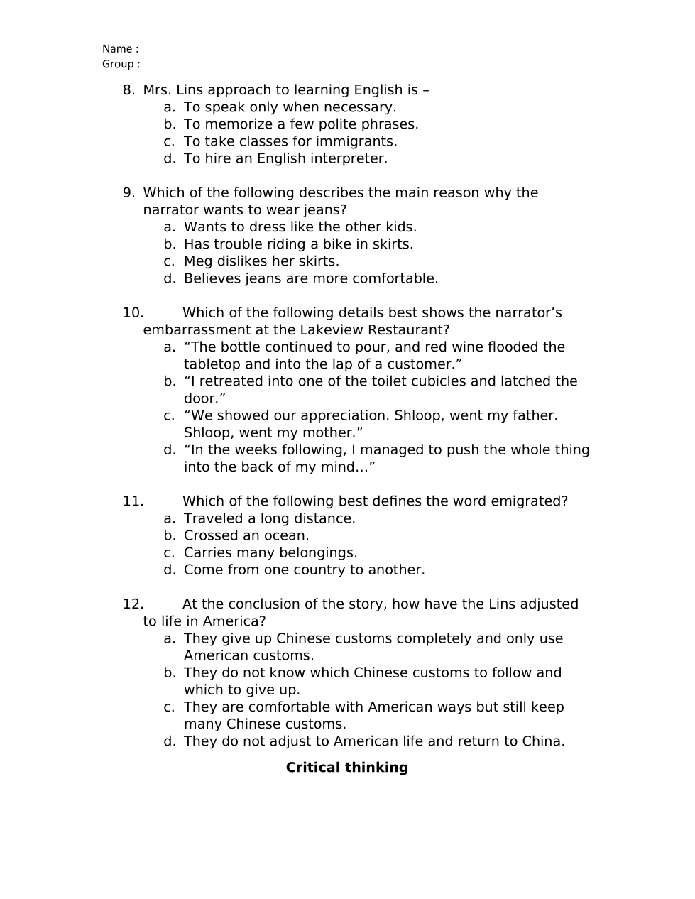 At the conclusion of the story, how have the Lins adjusted to life in America?
