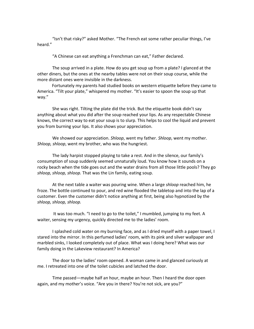 What happens when the Lins begin to slurp their soup? How is slurping intepreted in Chinese culture? How is this different from the way slurping in interpreted in American culture?