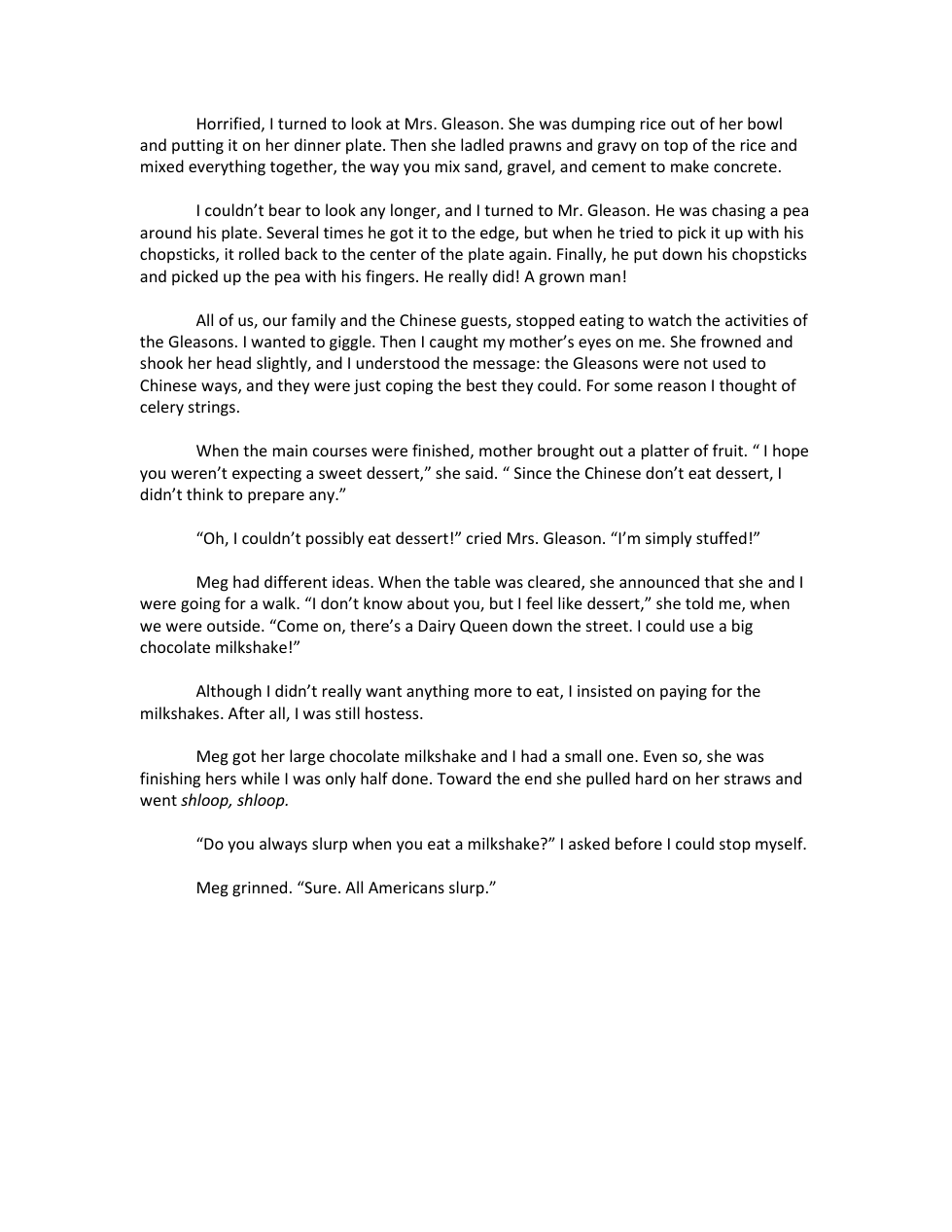 Describe the scene at the Gleason's. What reactions indicate that the narrator's family does not understand the culture?
