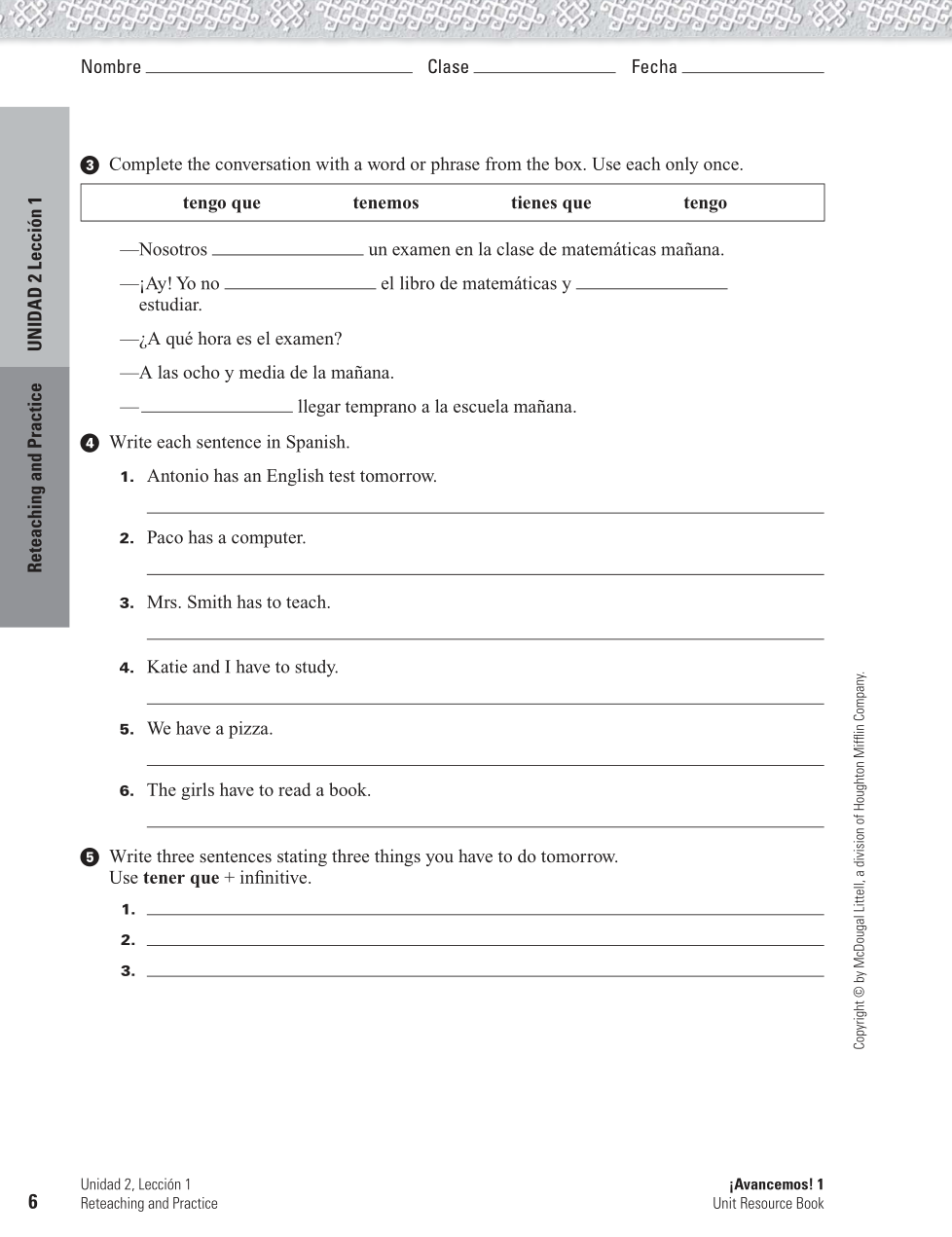 Write another sentence saying what you have to do tomorrow using the correct form of tener que.