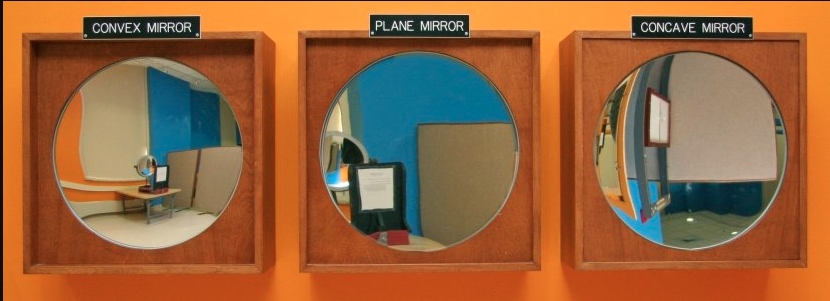 What is a "concave mirror"? Draw a diagram showing how light is reflected off of a concave mirror. DO NOT forget to label your diagram.