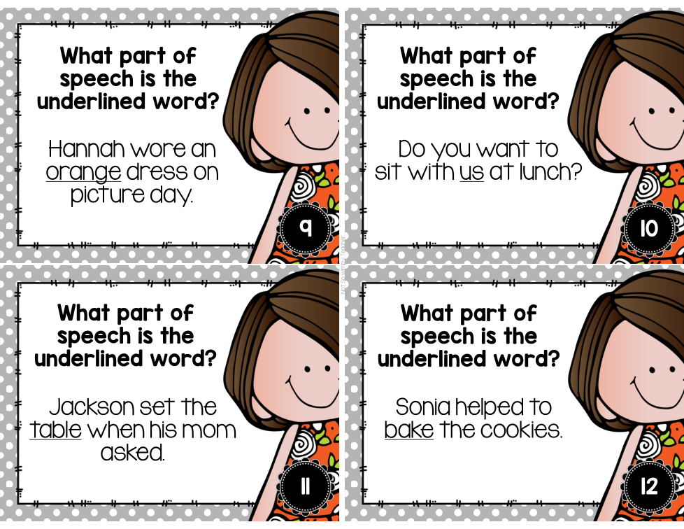 What part of speech is the underlined word?Hannah wore an orange dress on picture day.