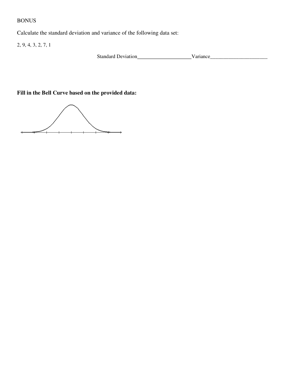 BONUS: Calculate the standard deviation and variance of the following data set, then fill in the Bell Curve based on the provided data: