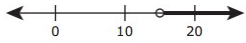 Olivia is selling books for $12 each. She wants to make more than $180 in book sales. How many books, must she sell in order to meet her goal. Which number line best represents the solution set to the inequality?