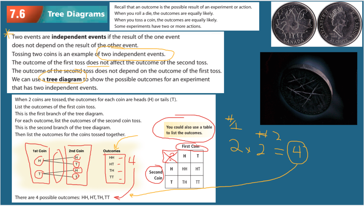 Create a tree diagram that shows all the possible outcomes for the following "independent events".