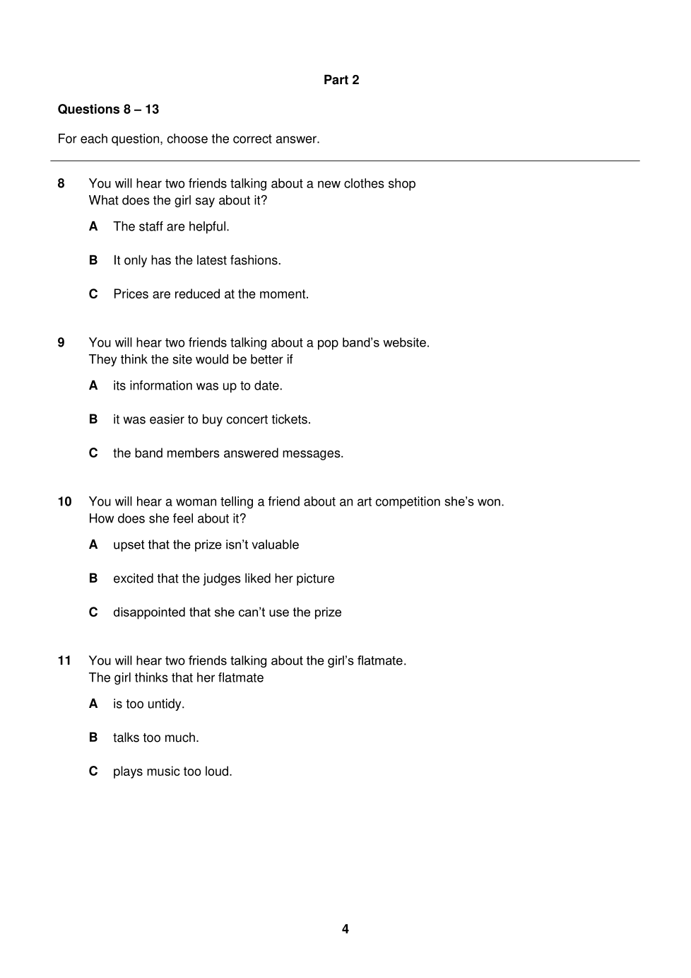For each question, write the correct answer in the gap. Write one or two words or a number or a date or a time.