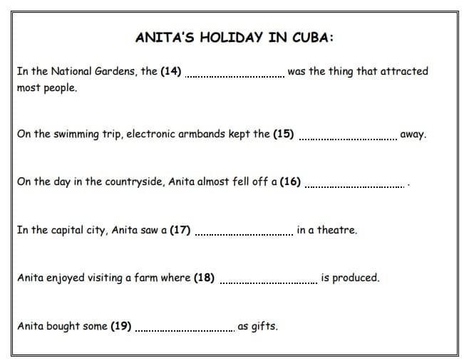 You will hear a radio presenter called Anita talking about her holiday in Cuba.