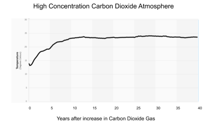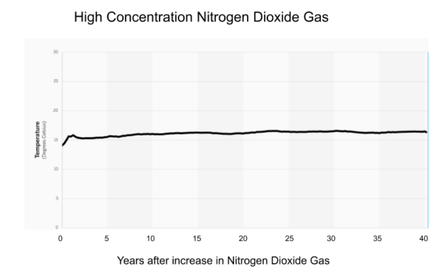 Nitrogen Dioxide (NO2) is primarily introduced to the atmosphere by burning fossil fuels. If there was a sharp increase in NO2 in our atmosphere, what change in temperature would you expect to see within five years of that event? Back up your claim with evidence from the graph.