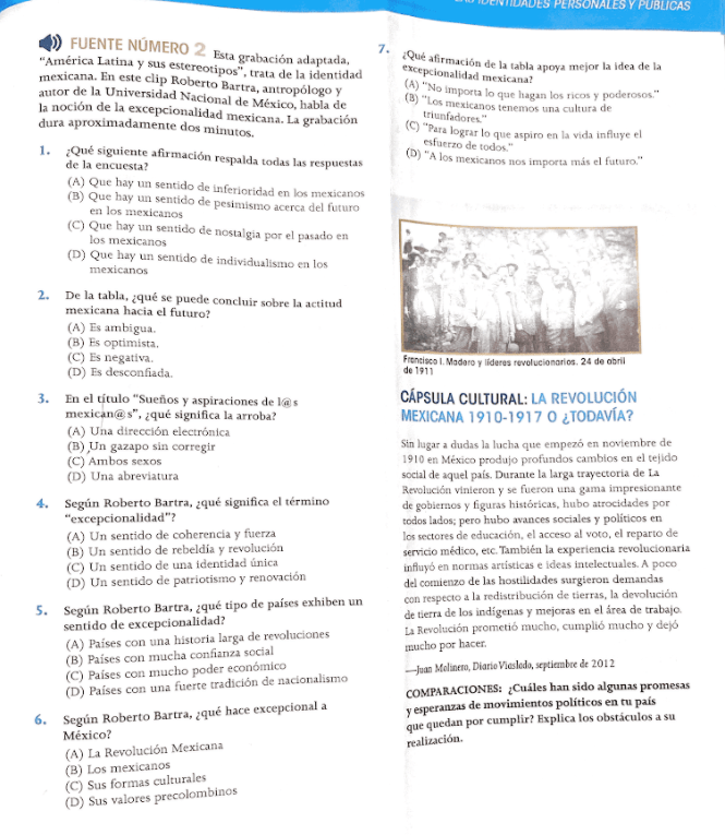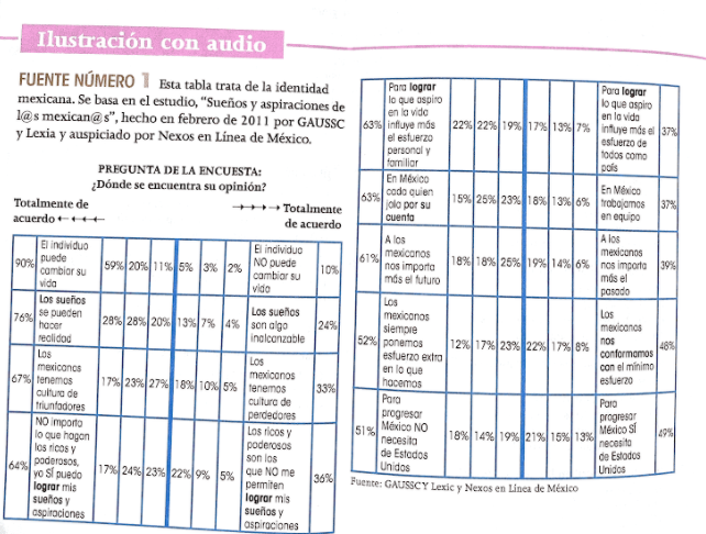 Instrucciones: (Fuente 1) Lee el gráfico y ( Fuente 2 ) escucha la grabación. Después contesta las preguntas