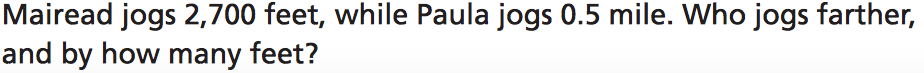Mairead corre 2.700 pies, mientras que Paula corre 0.5 millas. ¿Quién trota más lejos, y por cuántos pies?