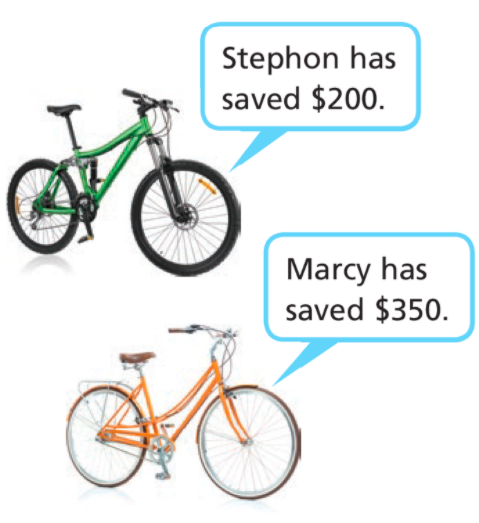 8. Stephon and Marcy are saving money to buy new bikes. If Stephon suddenly has to spend 12% of his savings and Marcy has to spend 8% of her savings, who spent more money? Explain how you found your answer.