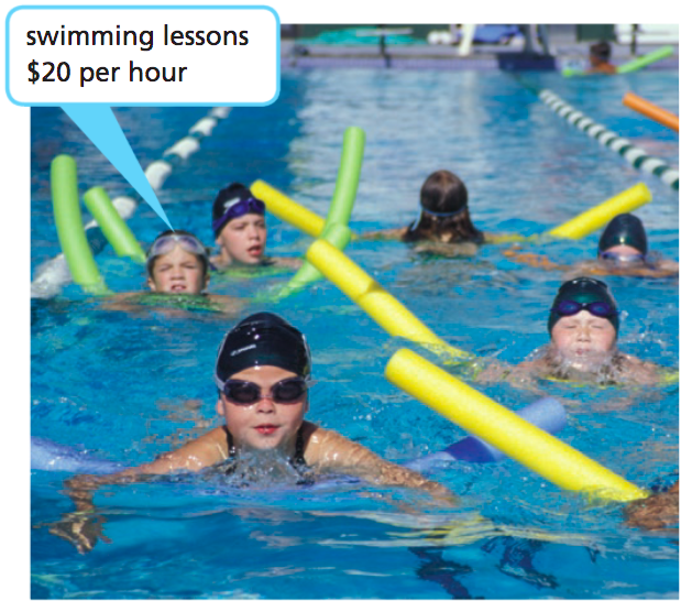 17. The regular price for swimming lessons for an hour is shown. The sale price for new students is 75% of the regular price. What is the sale price?