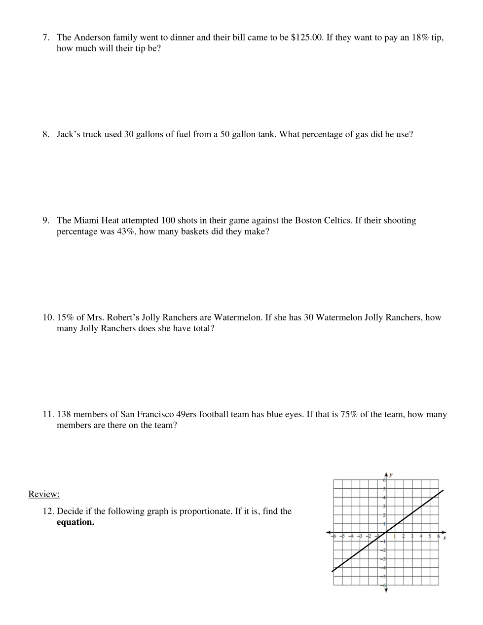 Set up your proportion like: The Anderson family went to dinner and their bill came to $125.00. If they want to pay an 18% tip, how much will their tip be?