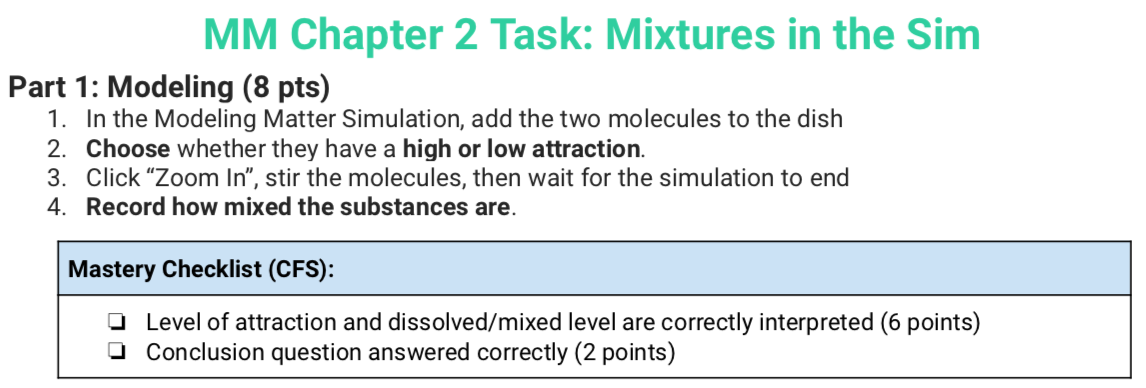 Conclusion Question: Which properties of the molecules causes them to mix more or remain unmixed even as they are stirred? Pick one.