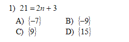Algebra Equations Quiz