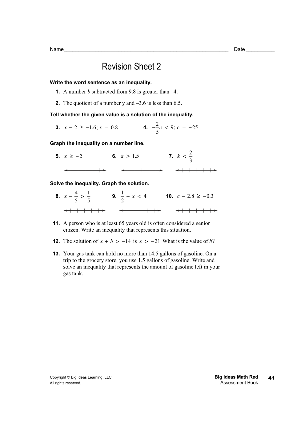 Your gas tank can hold no more than 14.5 gallons of gasoline. On a trip to the grocery store, you use 1.5 gallons. Write and solve an inequality that represents the amount of gasoline left in you gas tank.