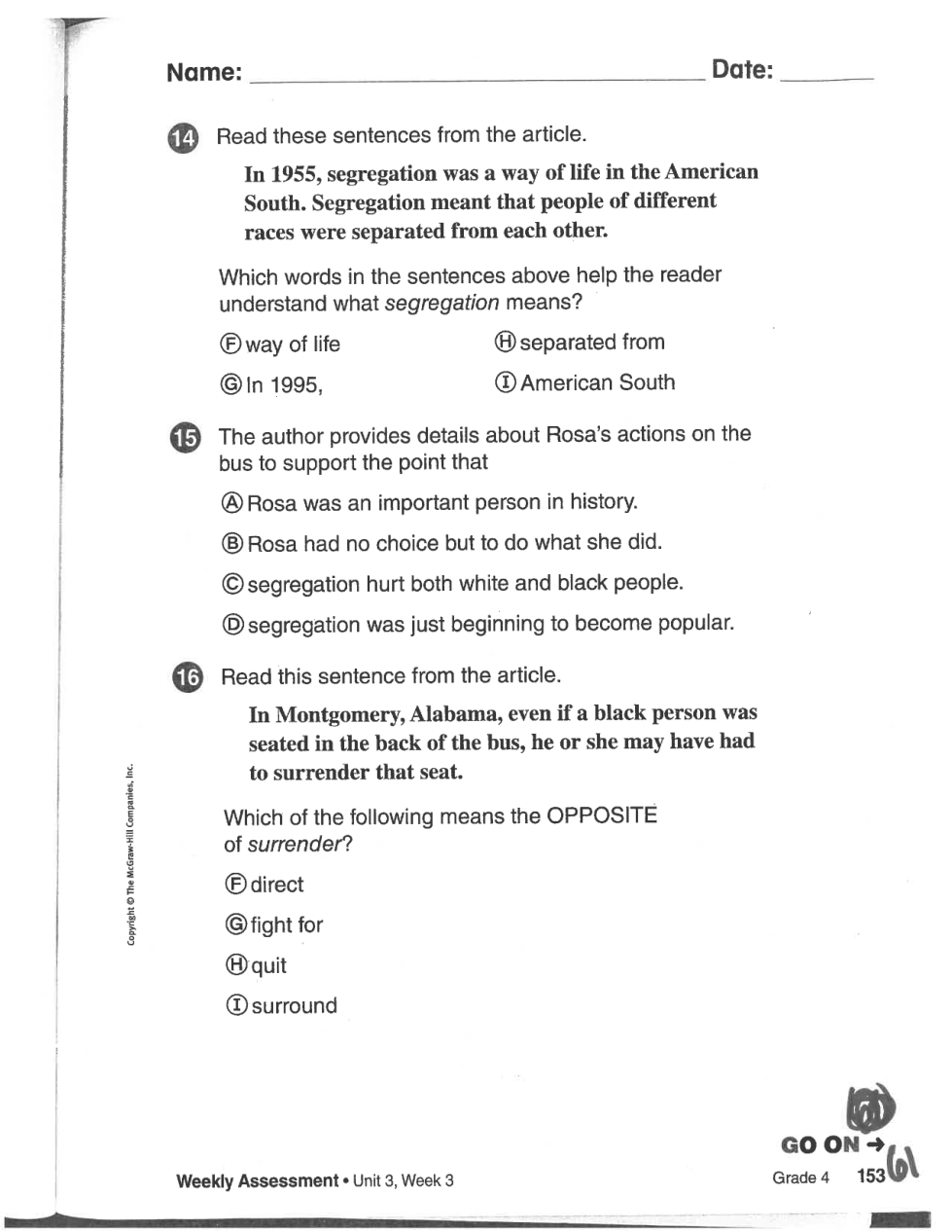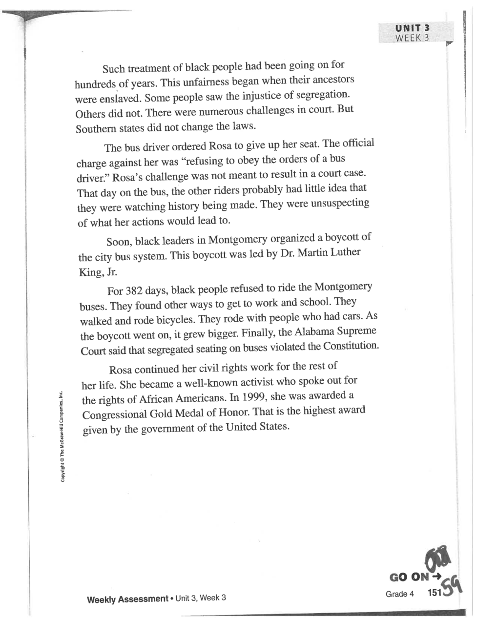 Reading Wonders, Unit 3, Week 3, Standing Up to Segregation