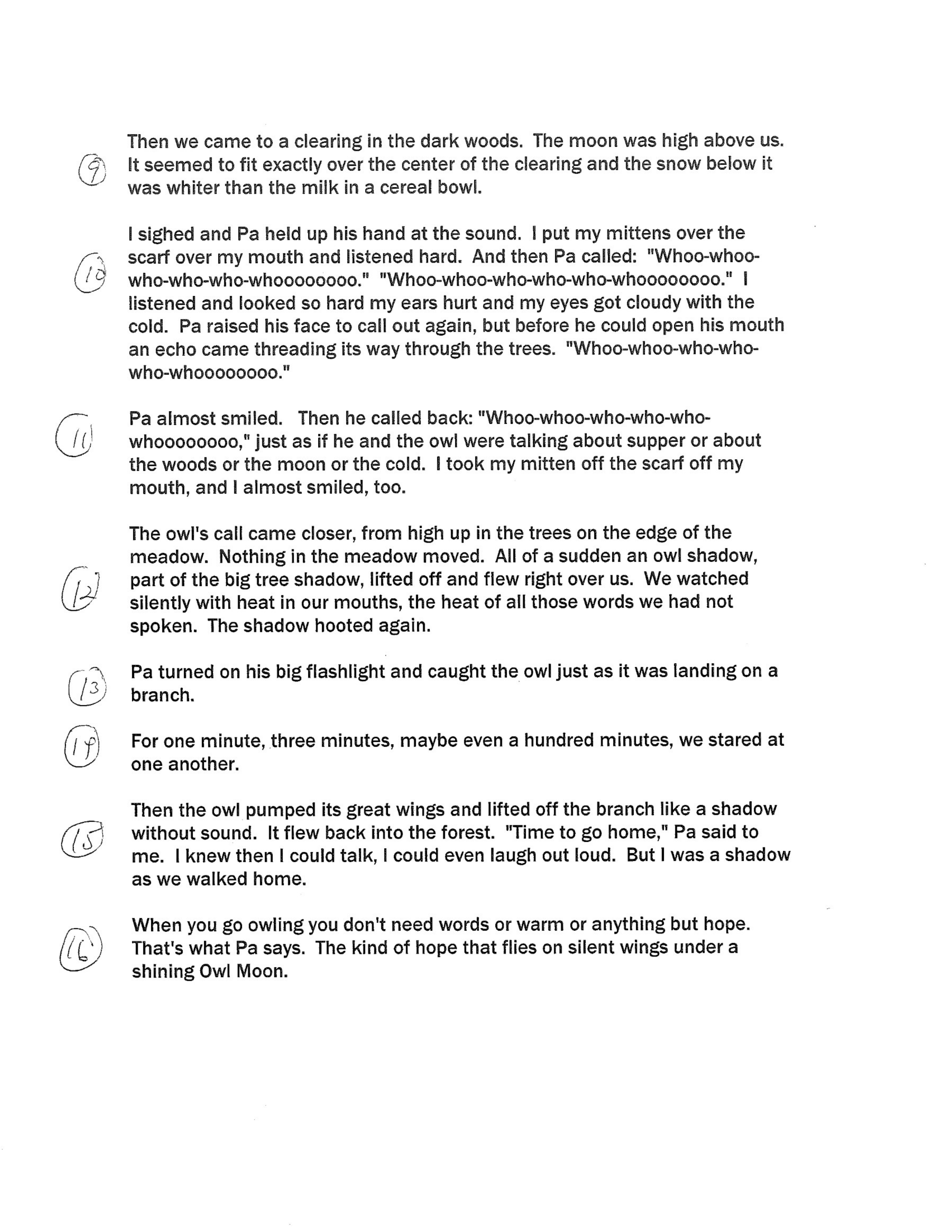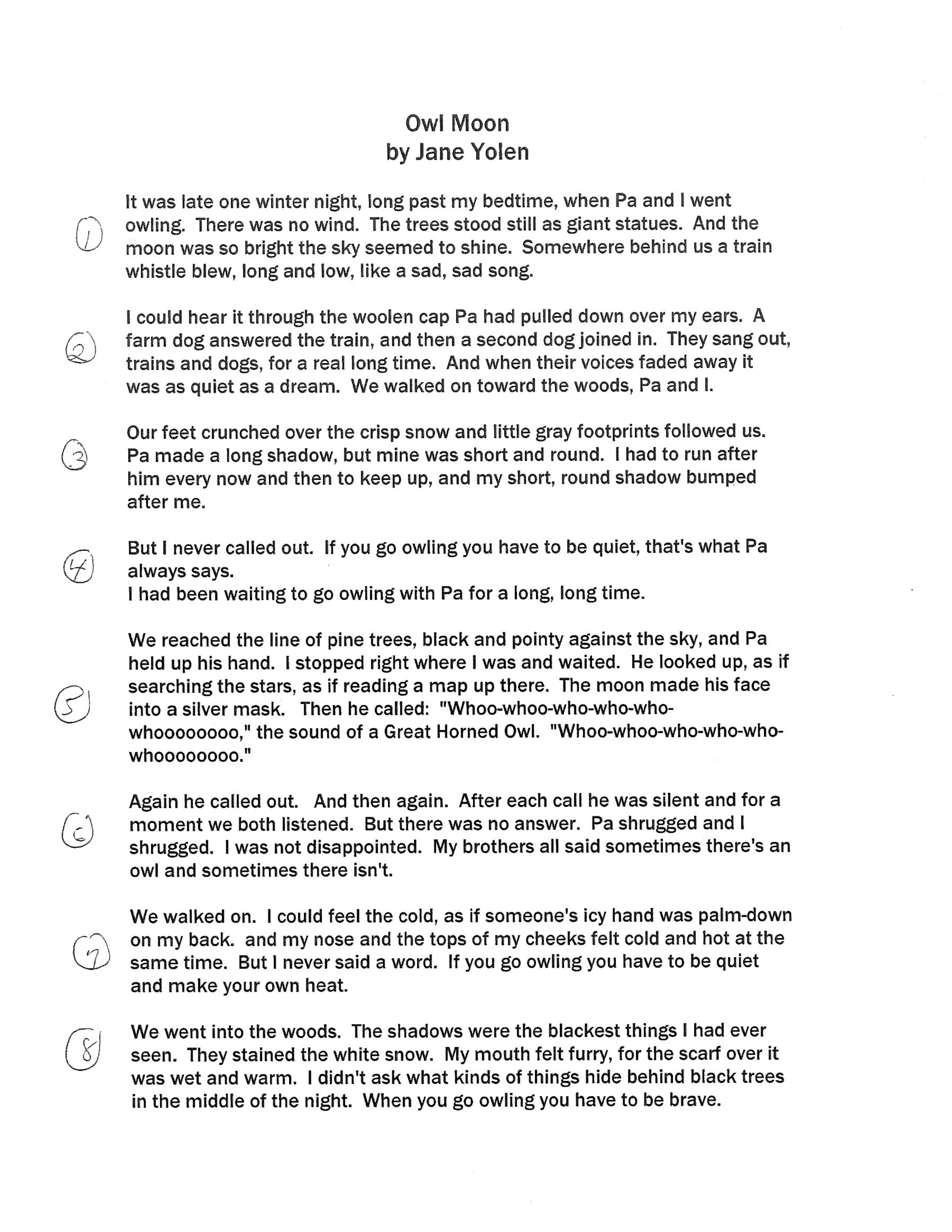In Paragraph 3 of "Owl Moon," what do the details show about the about the relationship between the father and child?
