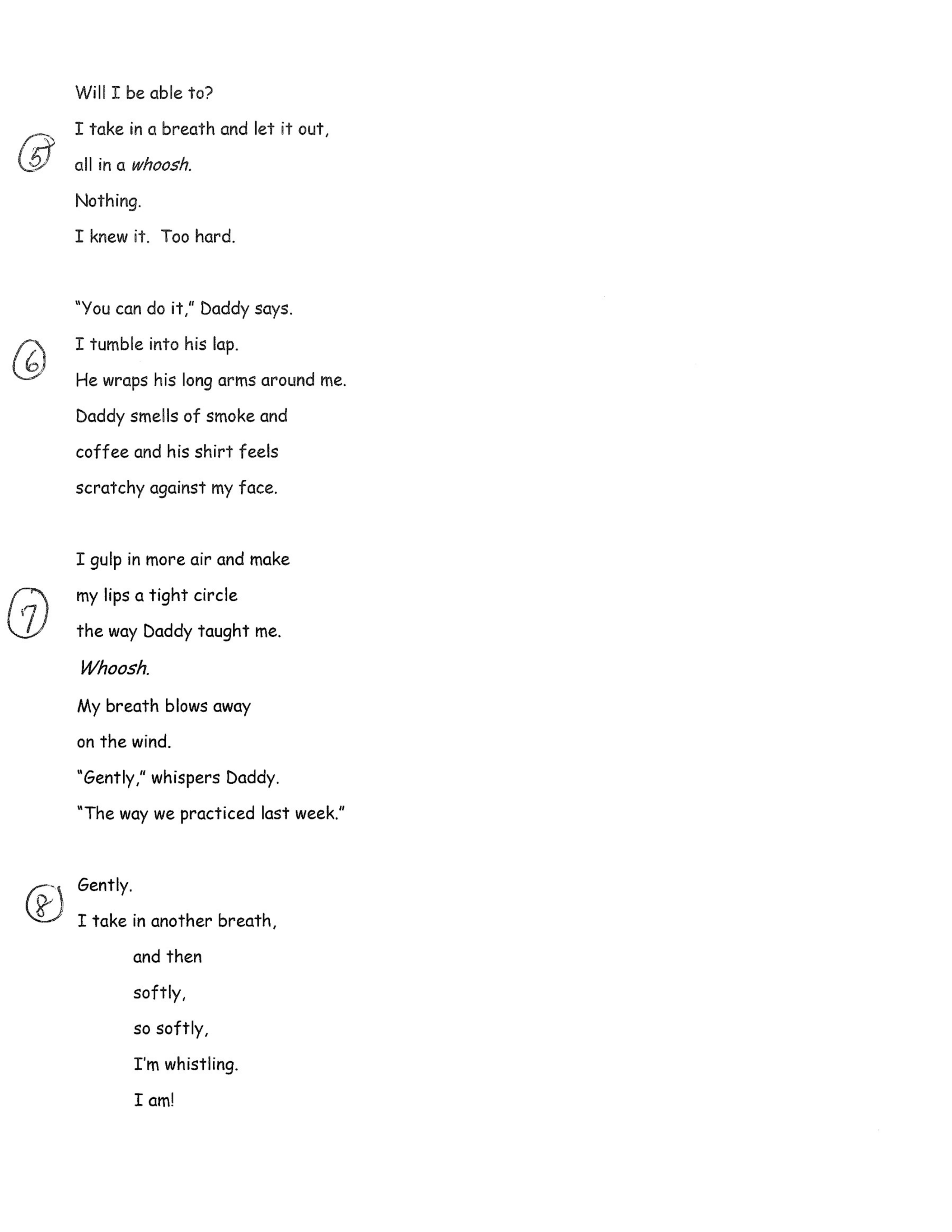 The narrator in "Owl Moon" and Jake in "Whistling" are taught by their fathers to do something new.