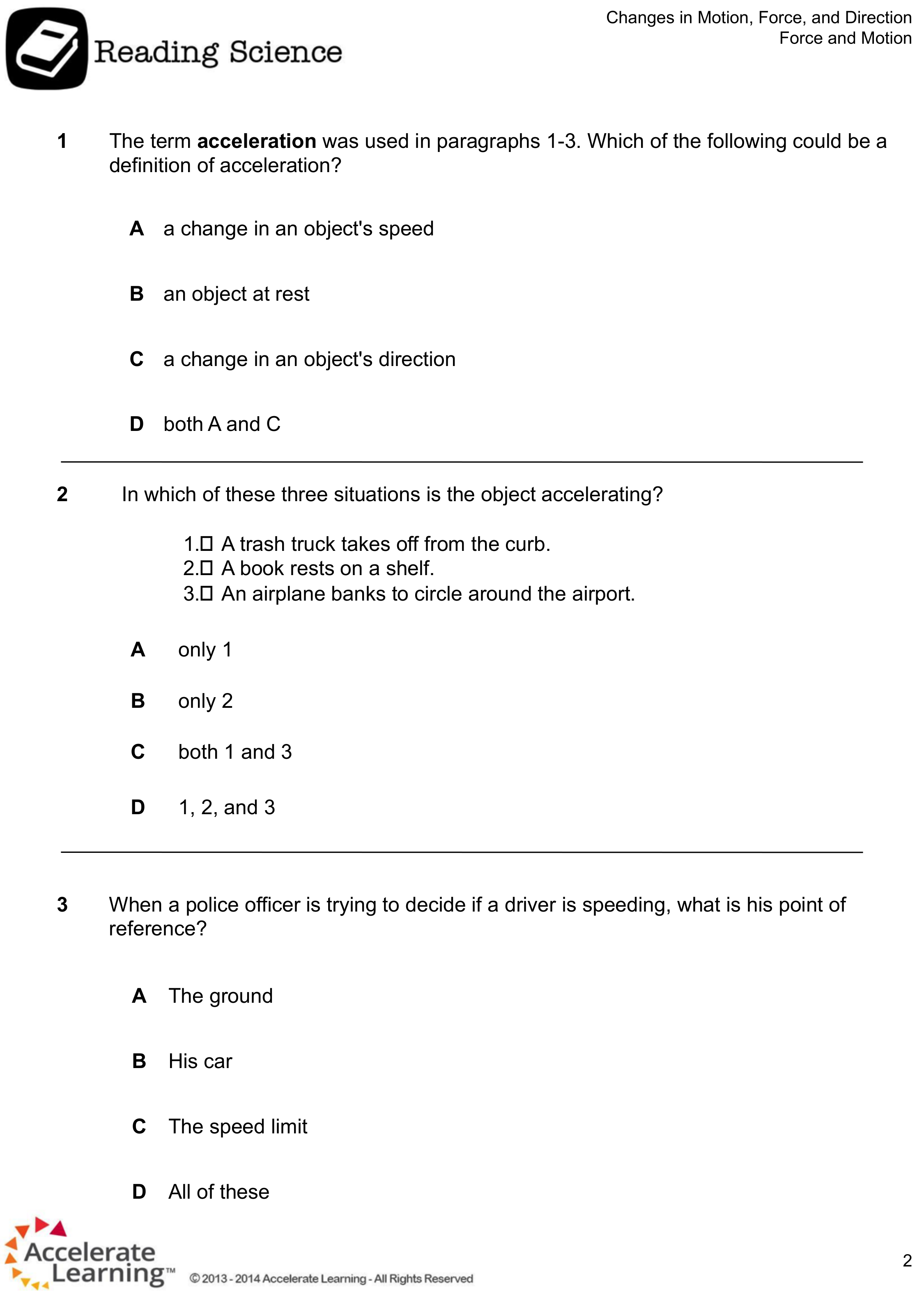 Motion of an object can be described by its?