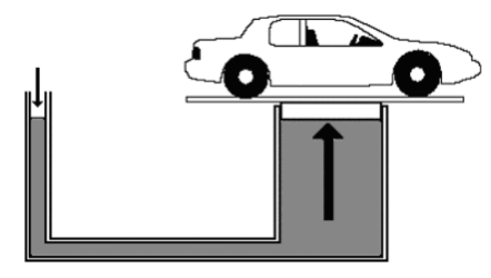 In a hydraulic lift model built by an apprentice (like the real one shown in the illustration below), a pedal is used to push down the large piston, while the small piston lifts up a load. The apprentice's model didn't work. What is wrong with it?