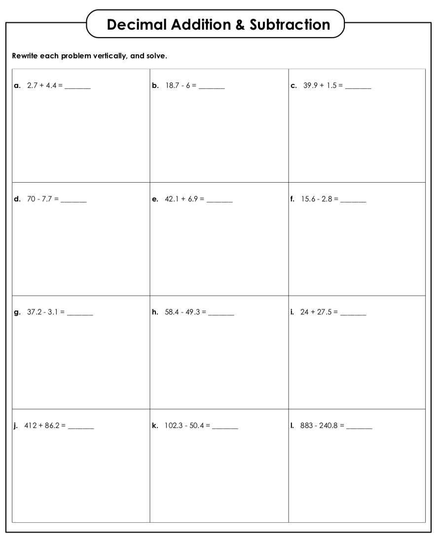 g. (E) Adding and Subtracting Decimals to the 'tenths'