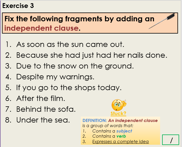 What is the difference between a subordinate clause and a fragment?