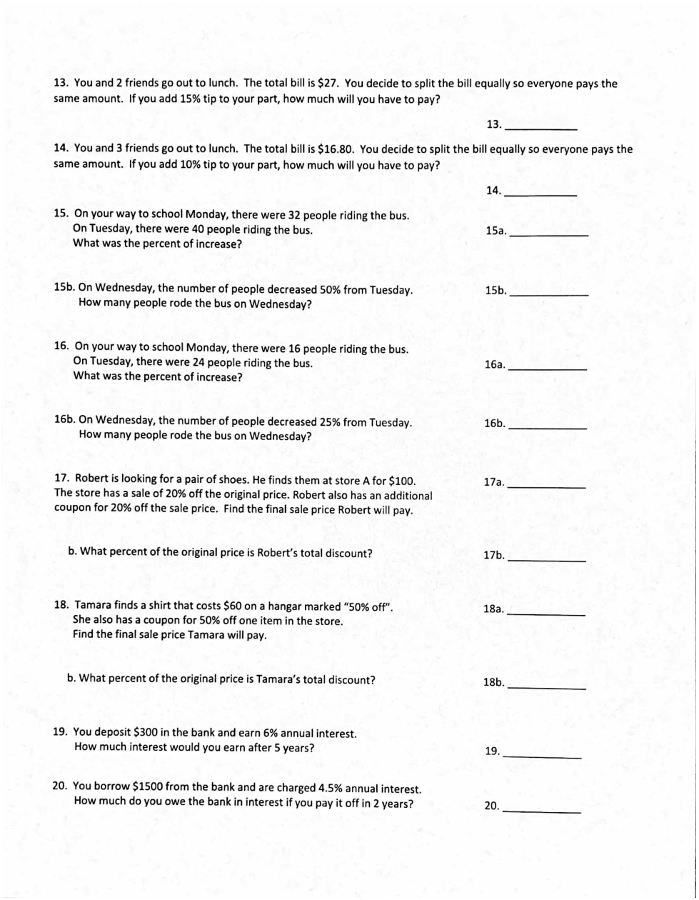 On your way to school Monday, there were 16 people riding the bus.On Tuesday, there were 24 people riding the bus. What was the percent of increase?