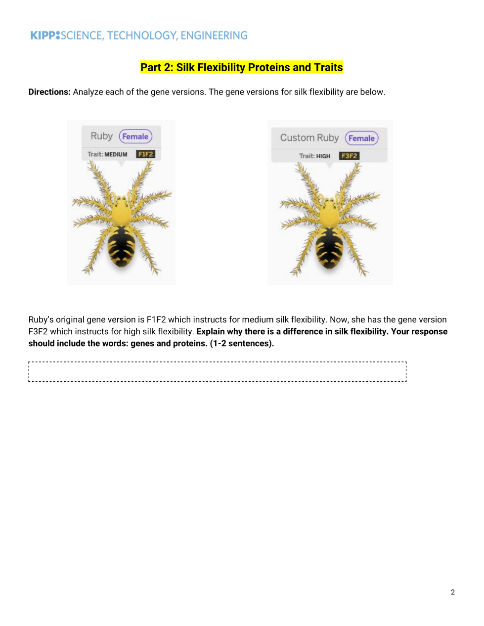 Explain why there is a difference in silk flexibility. Your response should include the words: genes and proteins.