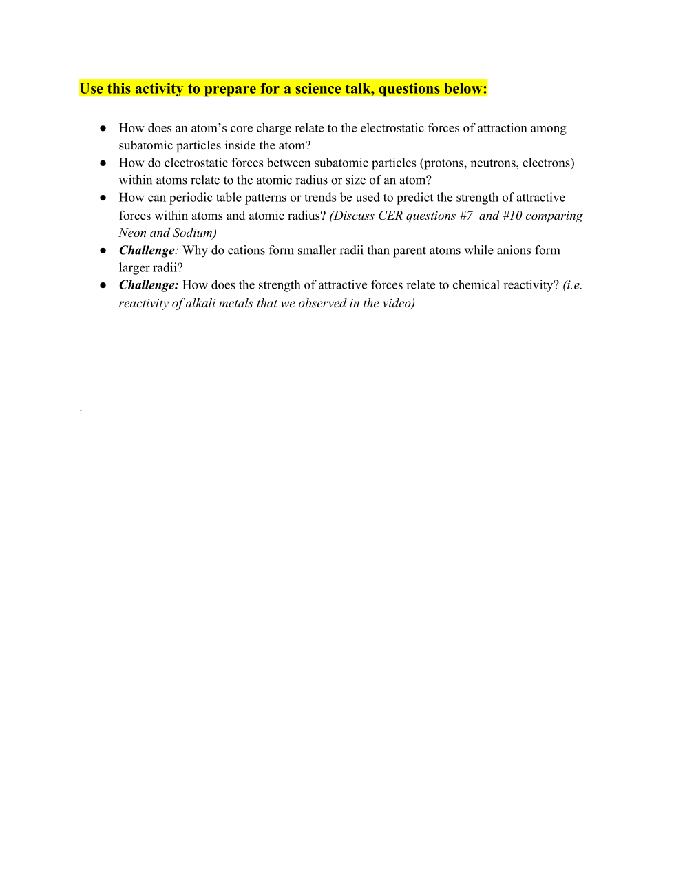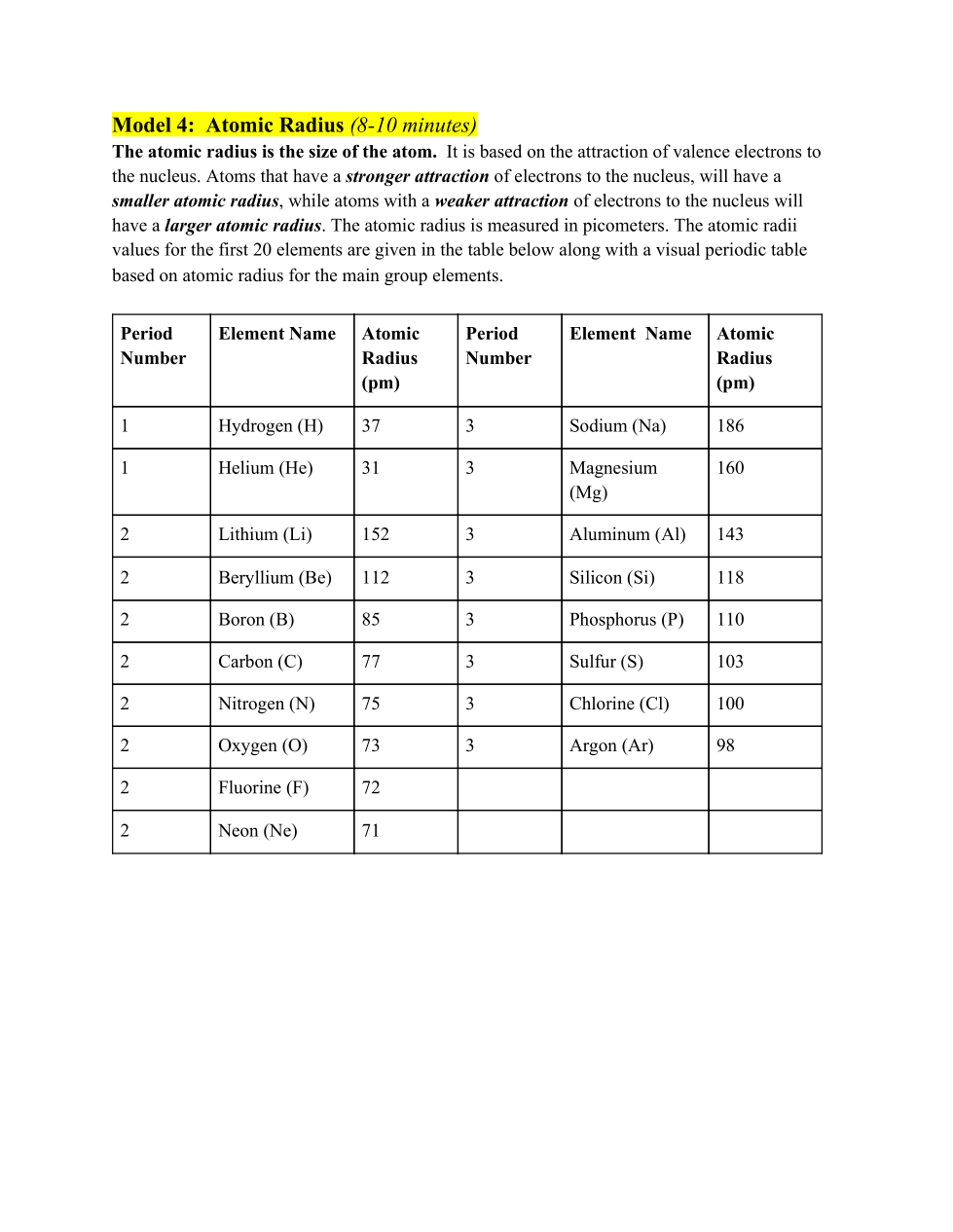 4.2 Periodic Table Properties: Core Charge and Atomic Radius