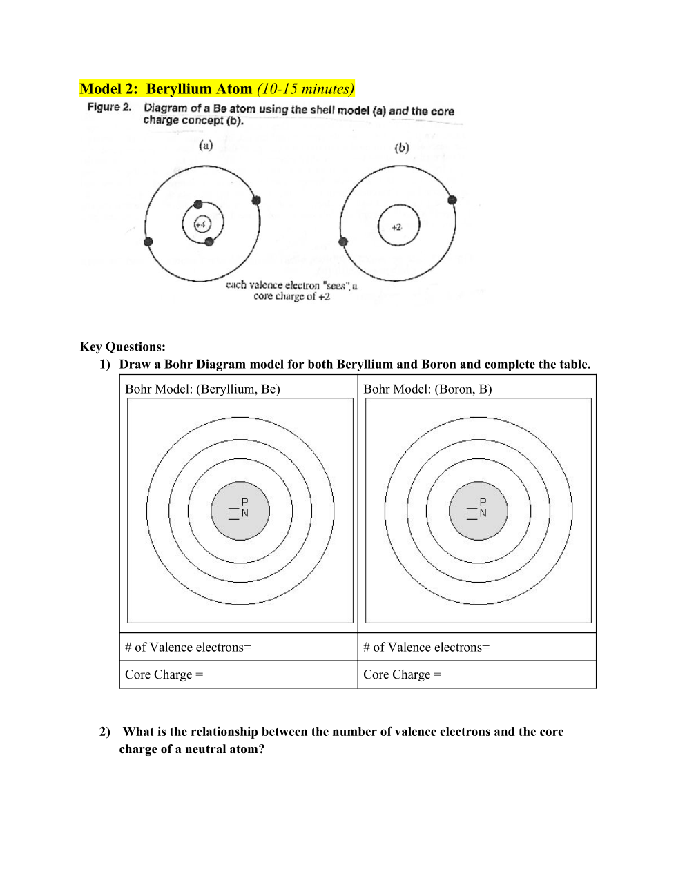 Drag the correct number under each category for the valence electrons and core charge for Be.