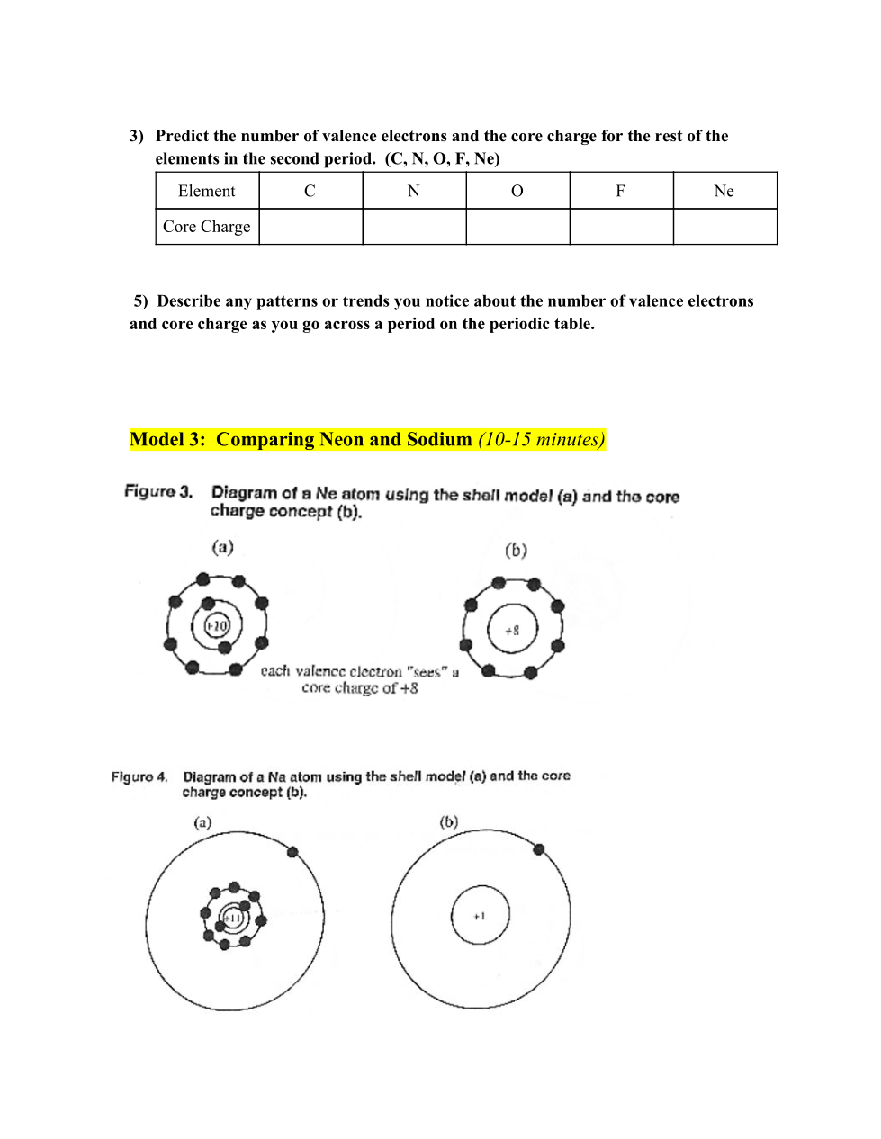 Describe any patterns or trends you notice about the number of valence electrons and core charge as you go acrossa period on the periodic table.