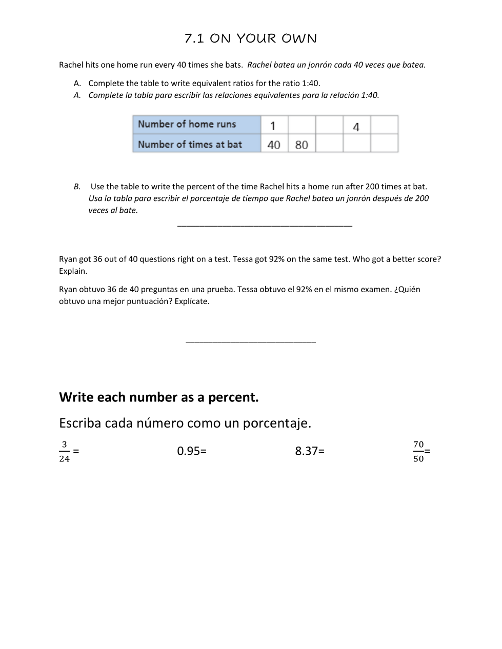 Write each number as a percent.Escriba cada número como un porcentaje.