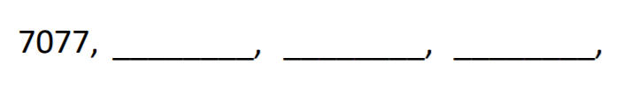 A pattern has the rule “add 7” and starts with the number 7021. What are the next three numbers in the pattern? Type the next three numbers, and leave a space in between each number.