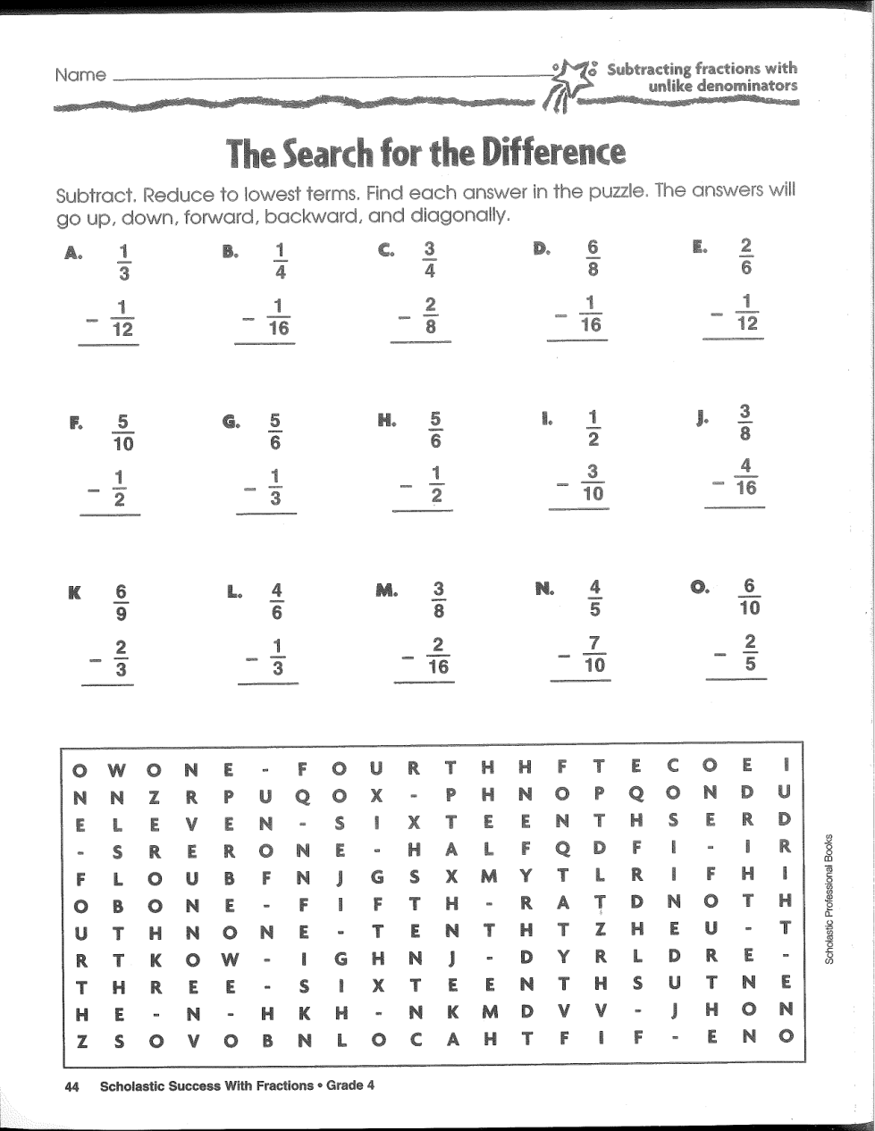Subtracting fractions pg. 44