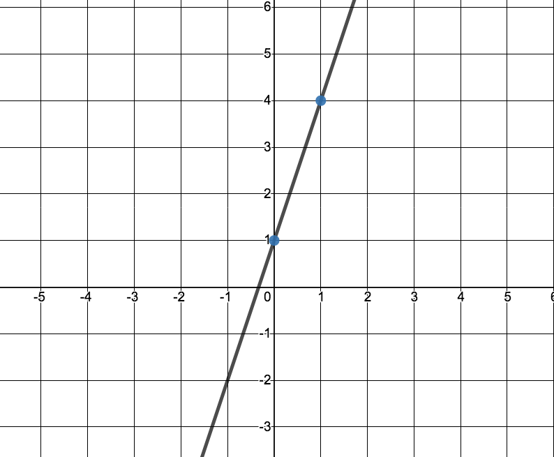 Find the equation of a line that has a slope of 2 and goes through the point (2,1). Be sure to type your answer in y=mx+b form with m and b values substituted in.