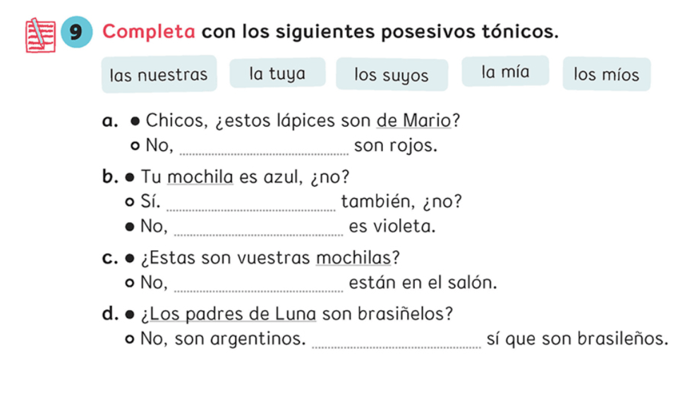 Escribe sobre ti mismo usando los posesivos.