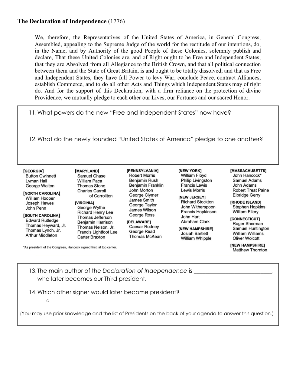 DQ 3.1 - Declaration of Independence (Close Reading)