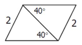 If AB = 12 and AE = 6, then DC = ______, and EC = _______. Write your answer as #, #