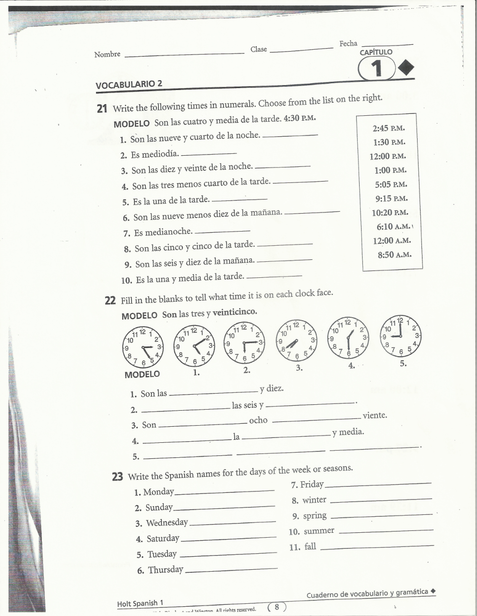 Choose the time that is stated in Spanish.