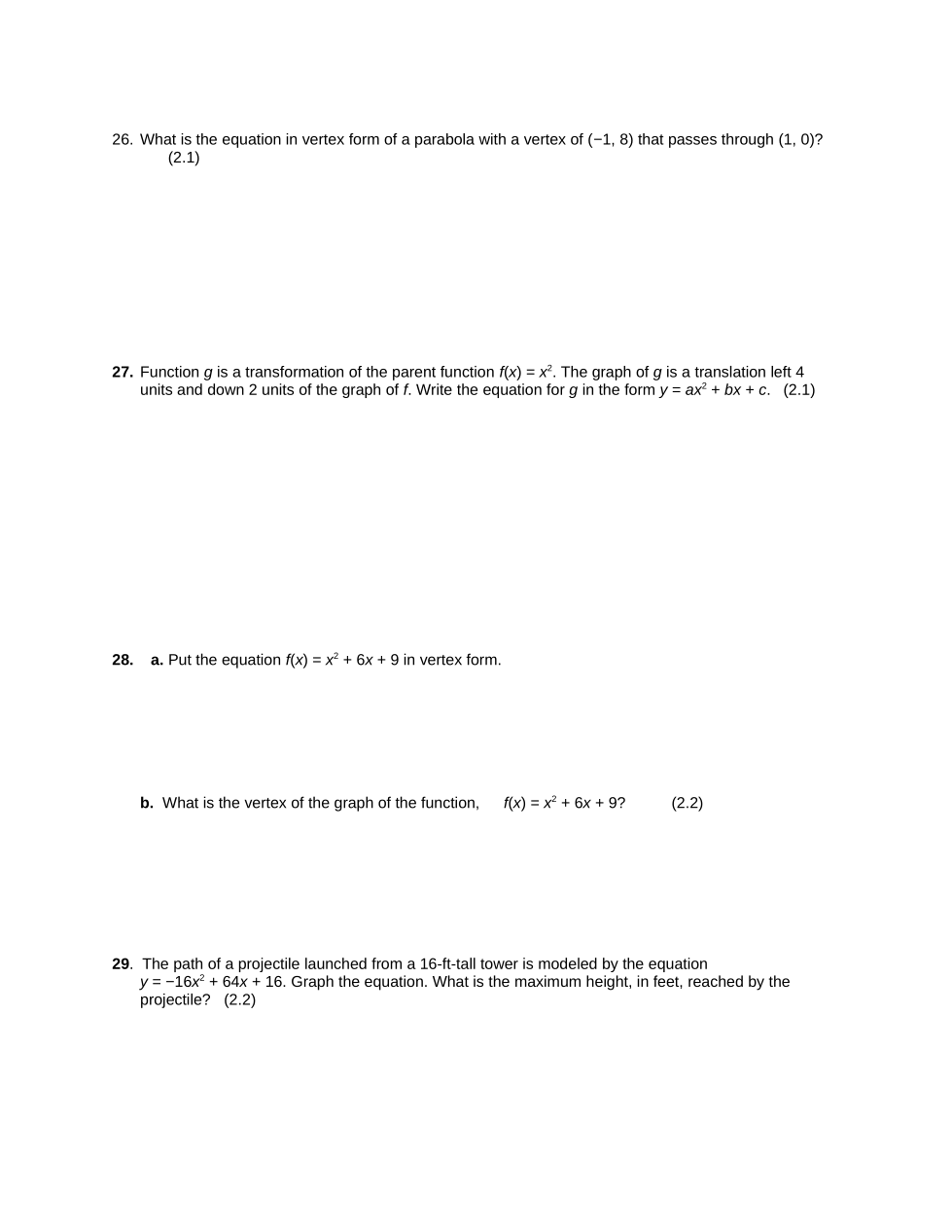 eqn in vertex form ?