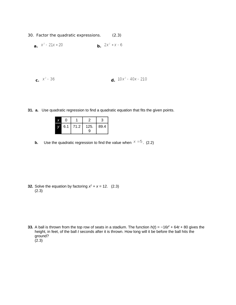 quad reg when x = 5 ?