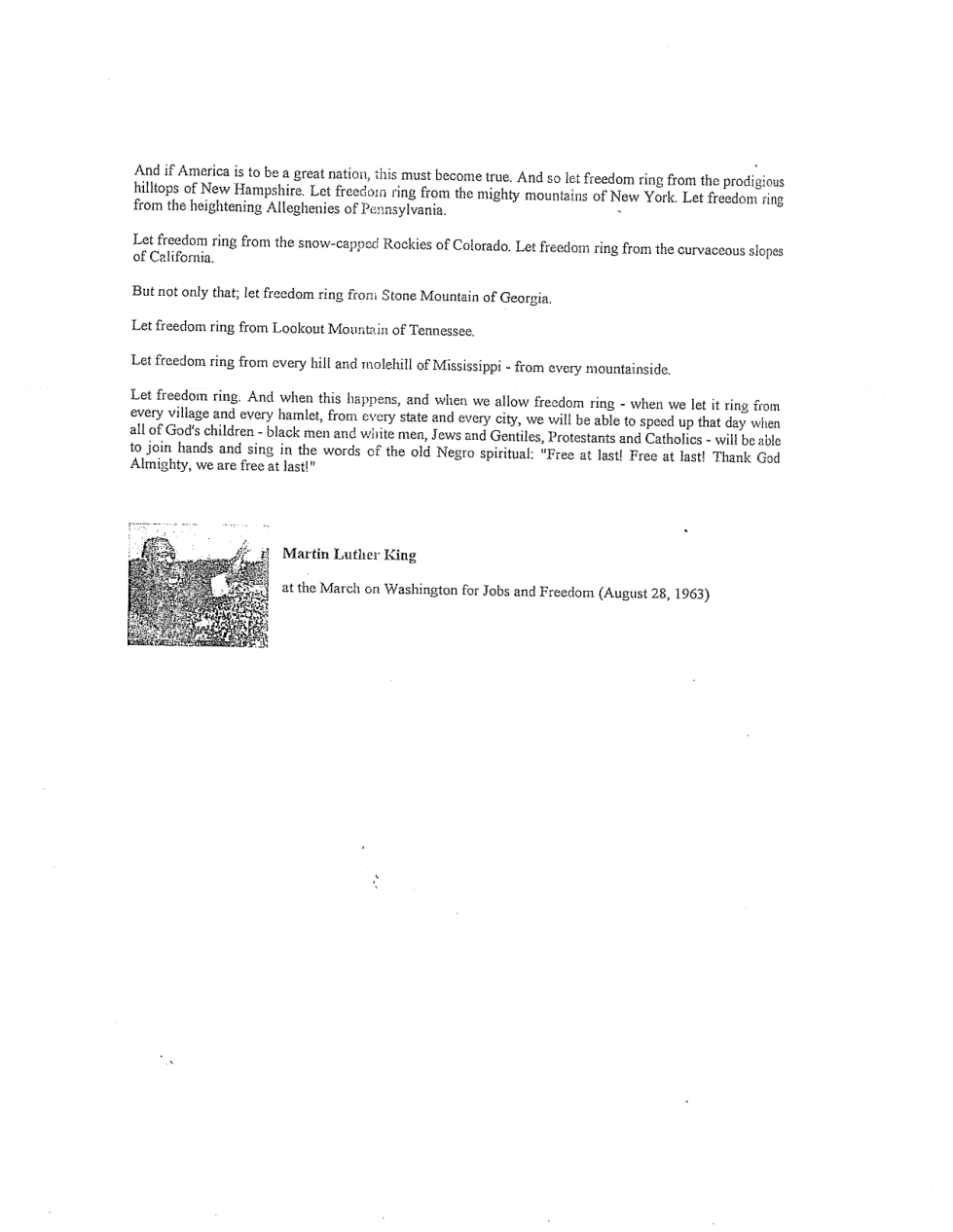 Respond to Dr. King's speech. In a paragraph, tell me how his speech moves you, makes you feel, or makes you think about. No wrong answers, but give me at least 4 sentences.