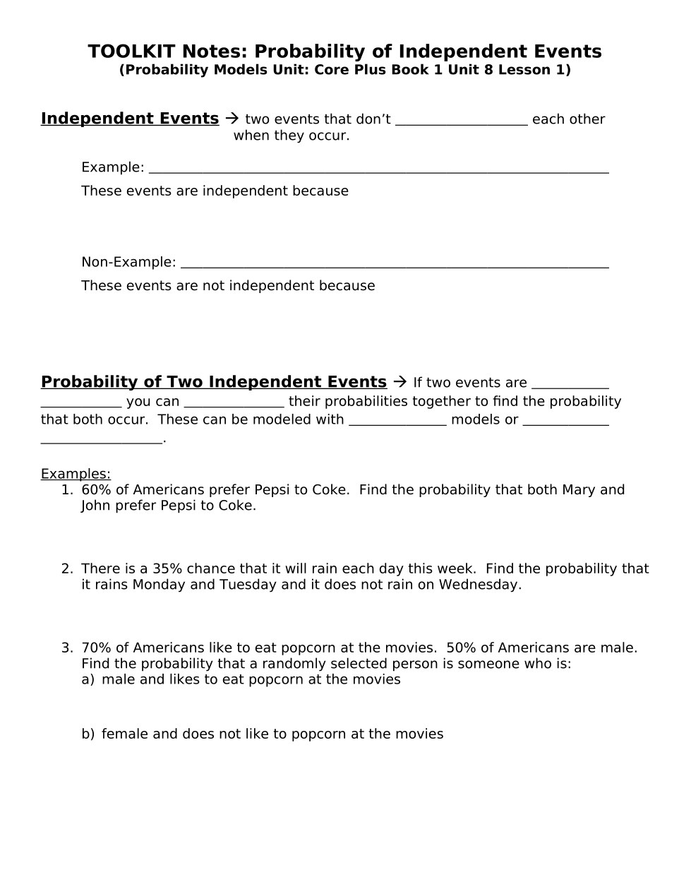 TOOLKIT Notes: Probability Models