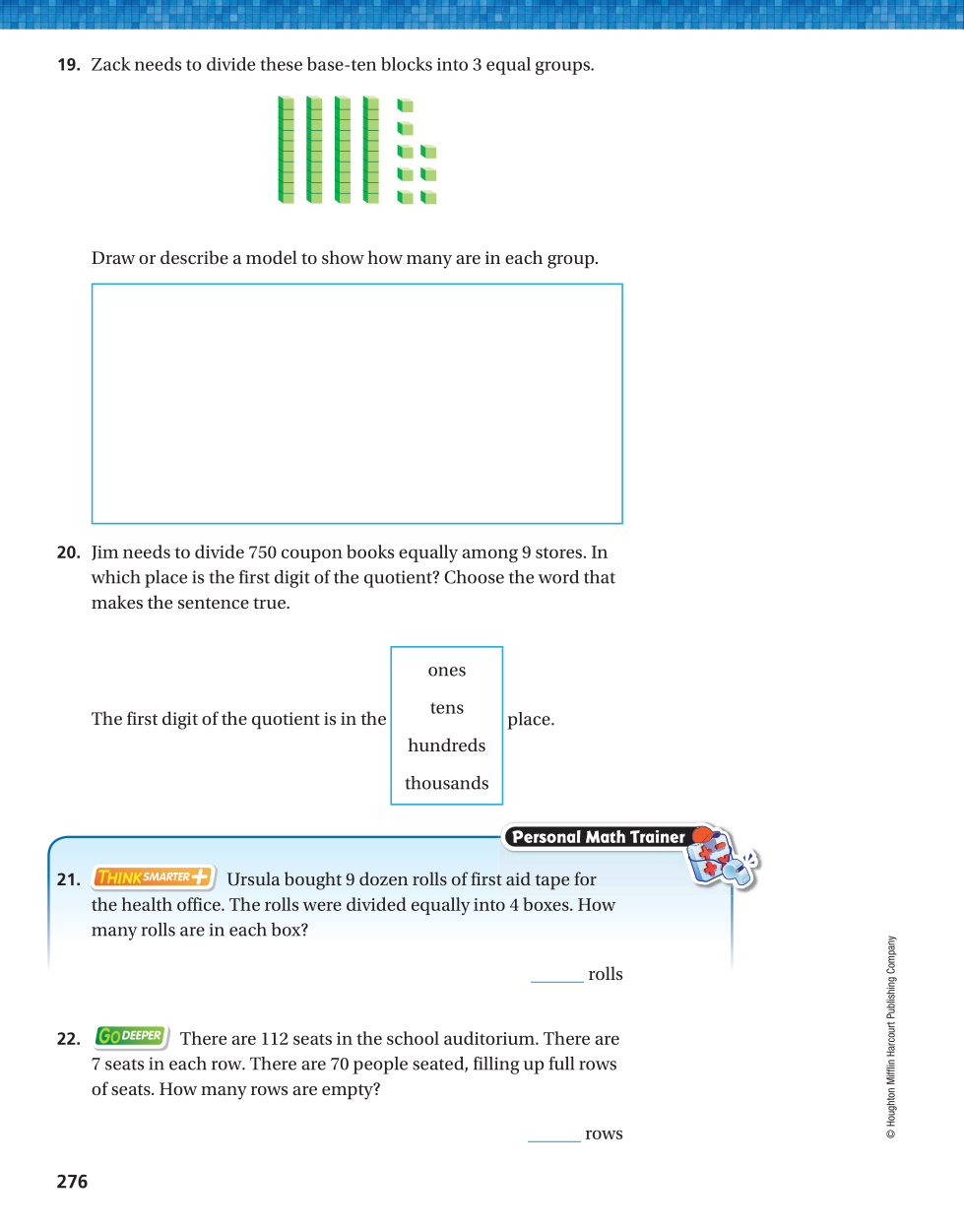 Set up the division problem you would use to solve the word problem. Then select the place that the first digit of the quotient would be written in.