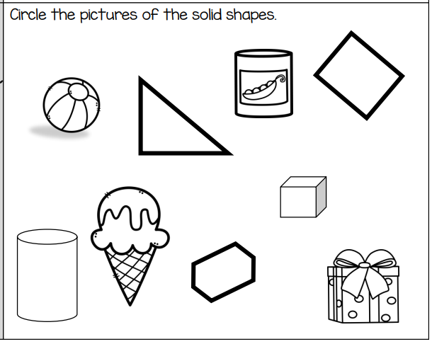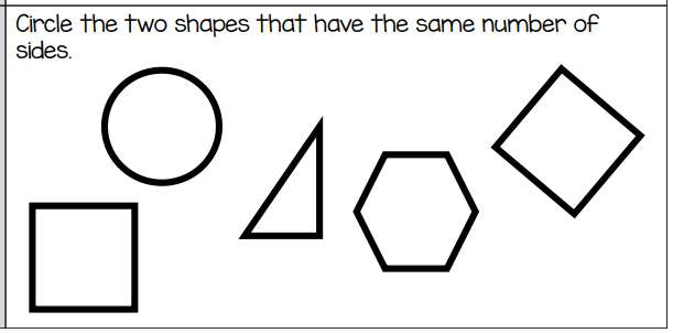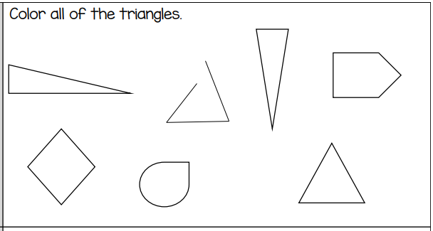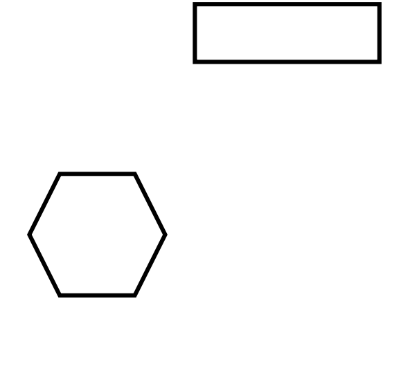 First, draw a circle next to the rectangle. Then, draw a square below the hexagon. Last, draw a triangle beside the square.